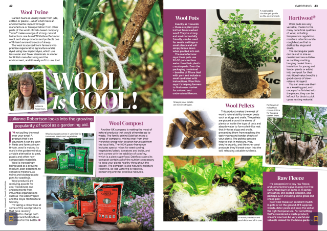 I specialise in writing about gardening, nature, sustainability and wellbeing, providing content to publications including The People’s Friend, My Weekly, Country Smallholding, Garden Answers, Platinum and the Daily Record – you can see examples of my published features here.